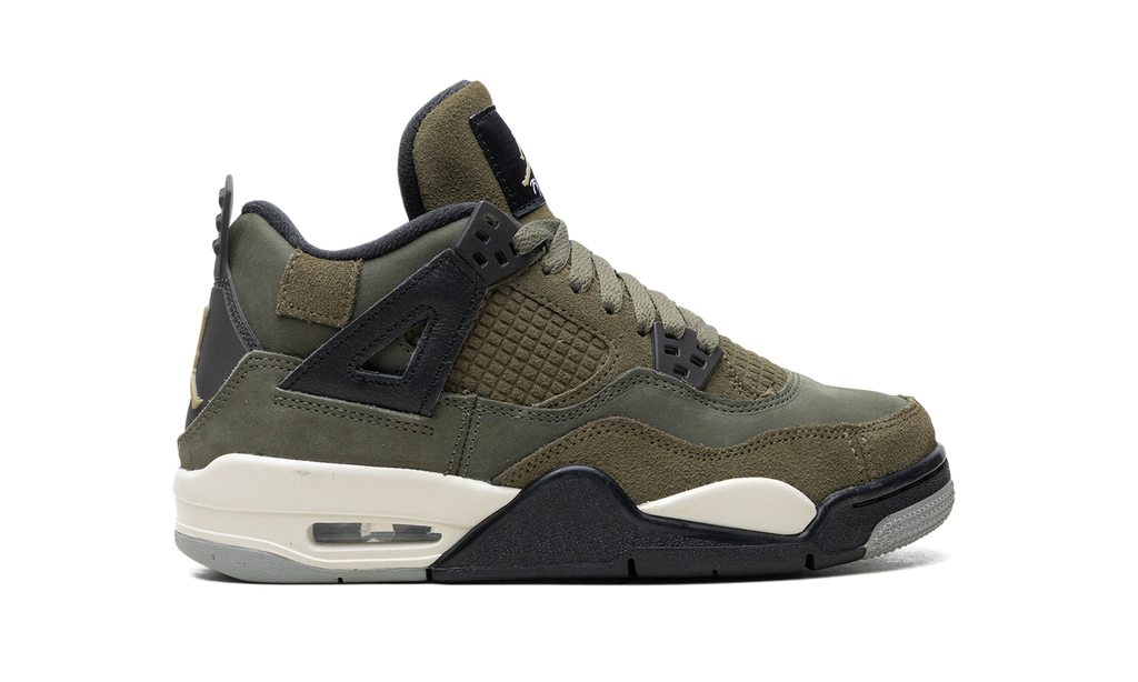 The Jordan 4 Retro SE Craft Medium Olive (GS) is a special edition, grade school-sized version of the Jordan 4 SE Craft Medium Olive.