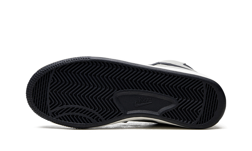 The overlays on the eye stay panel, mudguard, and toe box all feature a dark obsidian sail color. The profile shoe's Swooshes also in a granite hue adorn the sneaker's lateral side. The Terminator model has heel holes that reveal a granite underlay in place of a heel tab. The entire heel counter is covered in large Nike text branding. The midsole is white, while the outsole is sail rubber.